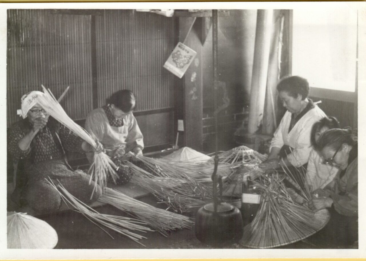 すげ笠生産の最盛期には全国各地で大量に生産され、旧清水町でも主産地の杉谷村・三留村・小羽村・風巻村・上天下村・下天下村・田尻栃谷村にて古くから作られ、明治時代の後期に最も多く、昭和時代に入ってやや衰え、昭和14・15年頃よりまた盛んになってきました。第二次世界大戦後は需要の激減によって全く衰え現在に至っています。