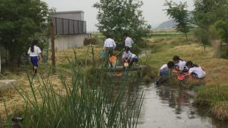放課後子ども教室ビオトープ観察 2017年5月24日公民館ニュース教室開始から、1カ月が経ち、公民館に児童が到着すると「ただいまー!」の声が響きます。 1年生も教室での過ごし方が分かってきたようです。 今日は、ビオトープ生き物観察、ザリガニの赤ちゃんや、メダカを見つけたようです。
