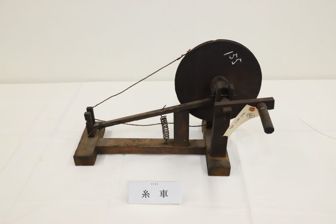 次に十分に打ち上げた綿を細かい竹筒に巻き付けて綿筒にし、これを糸まき(糸車)にかけ、糸にし、糸まきでかせにまく。