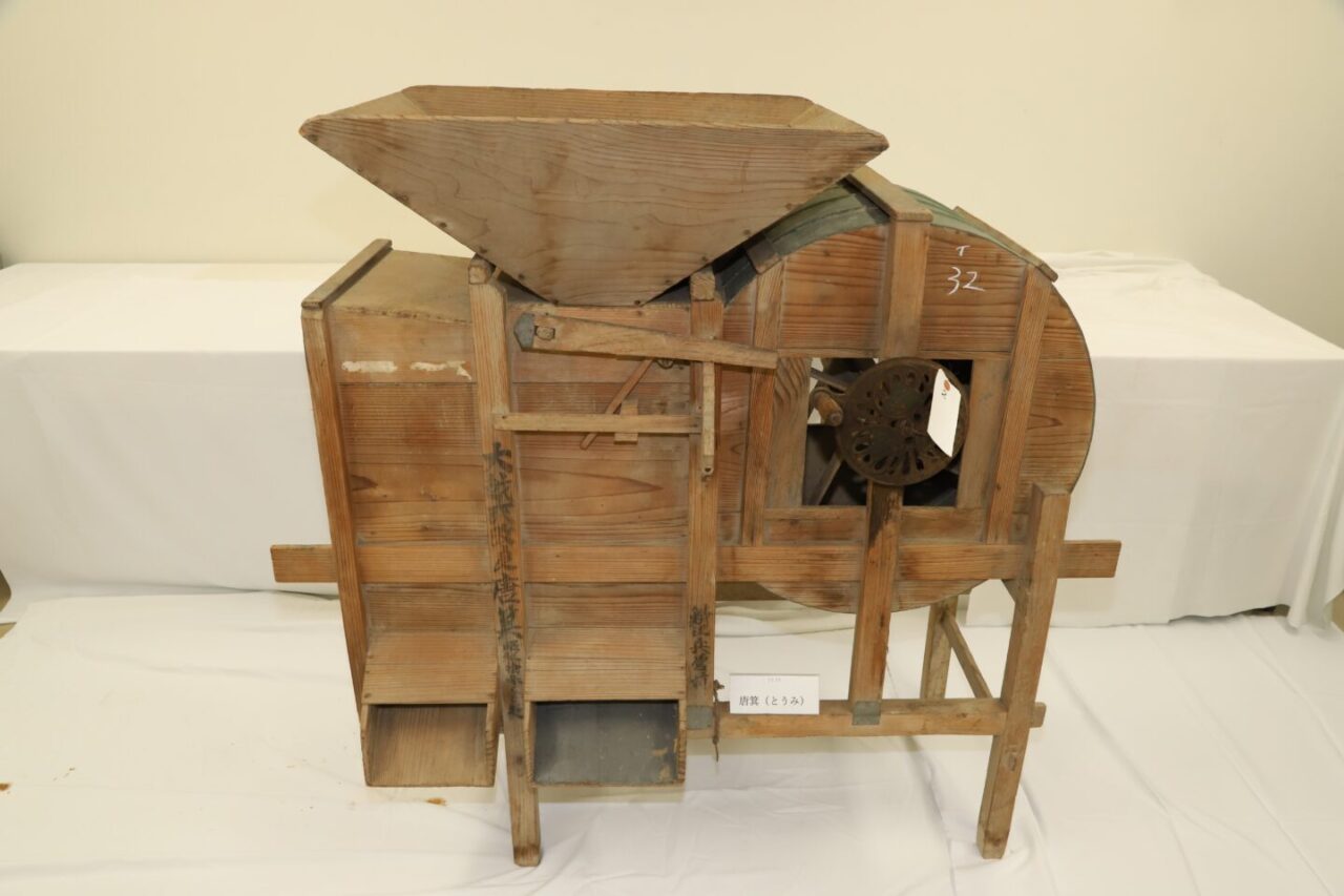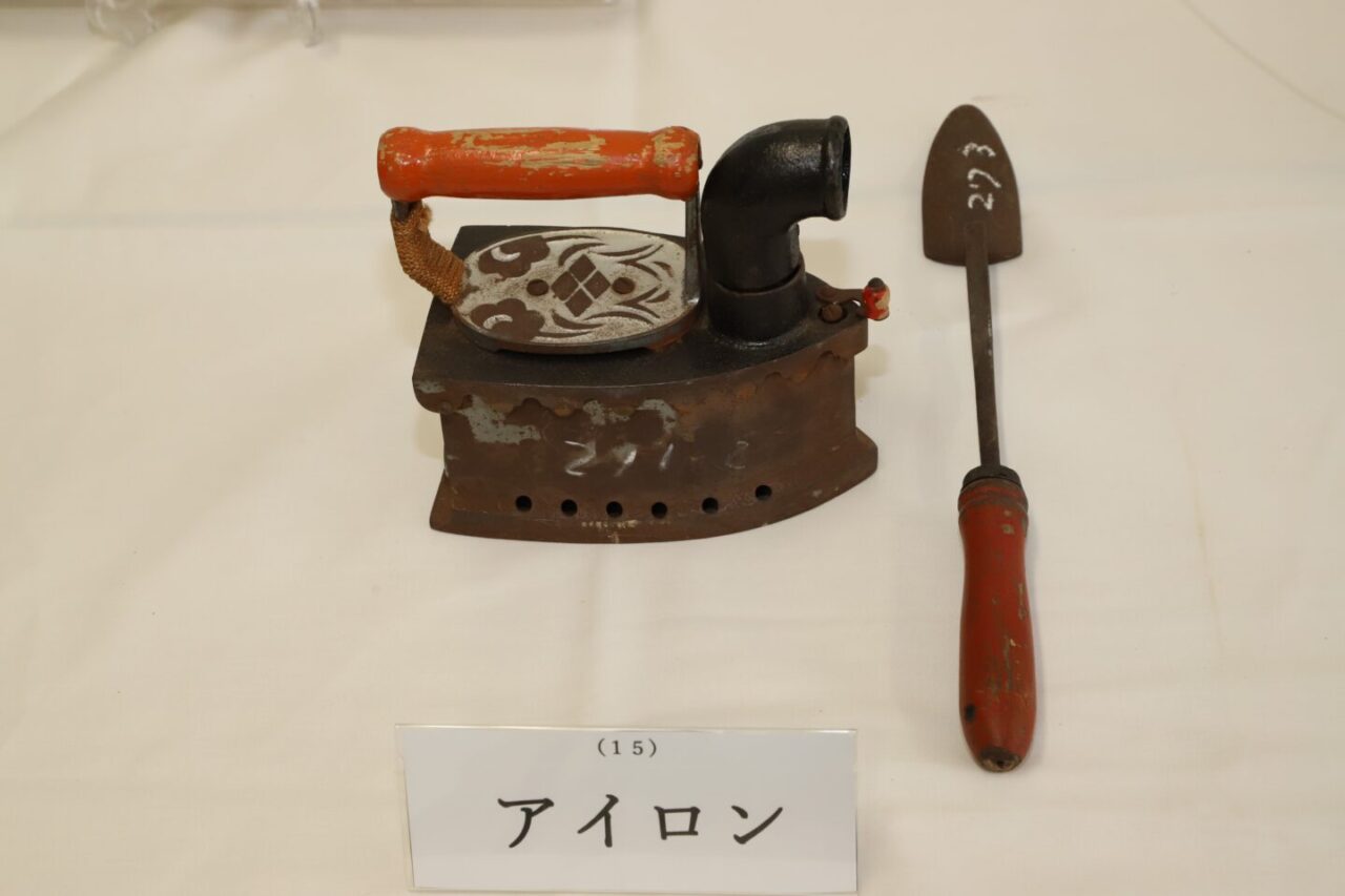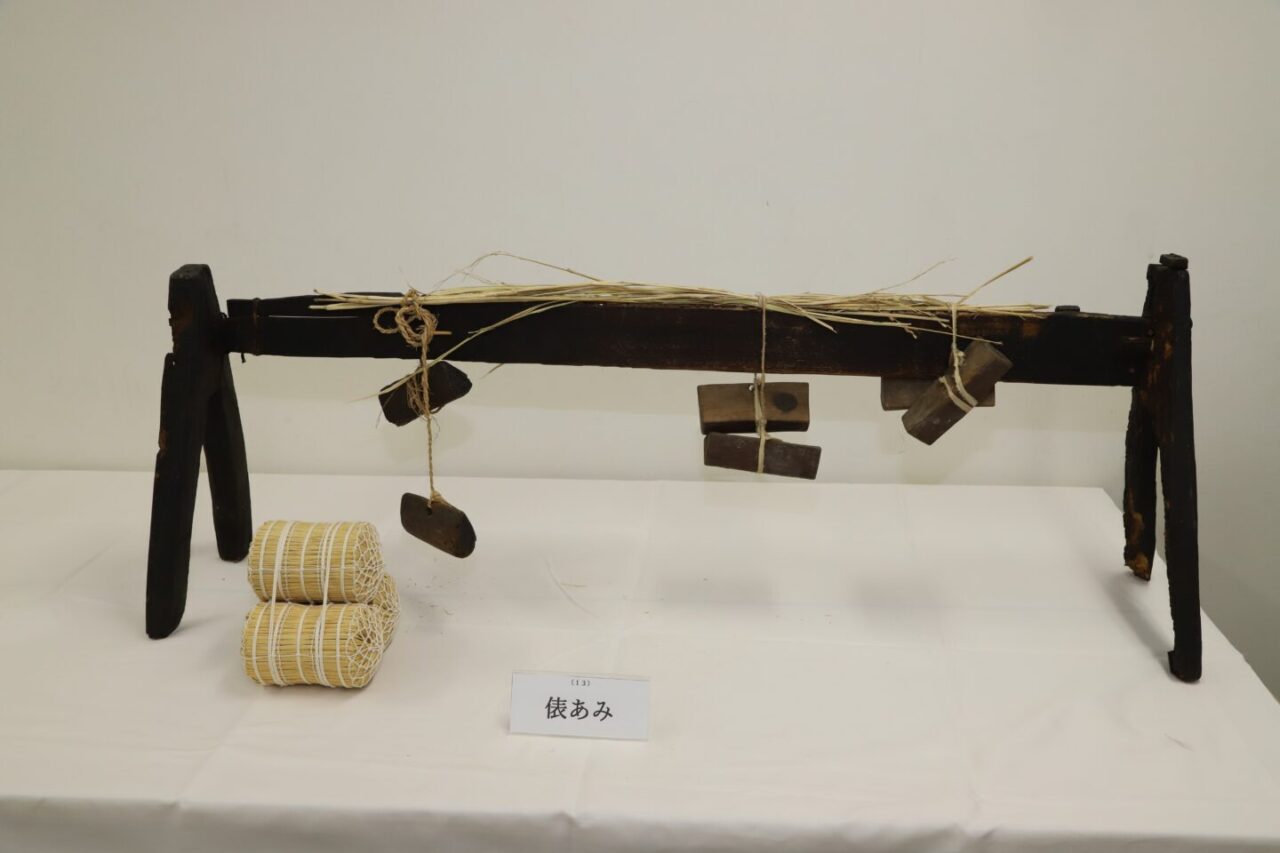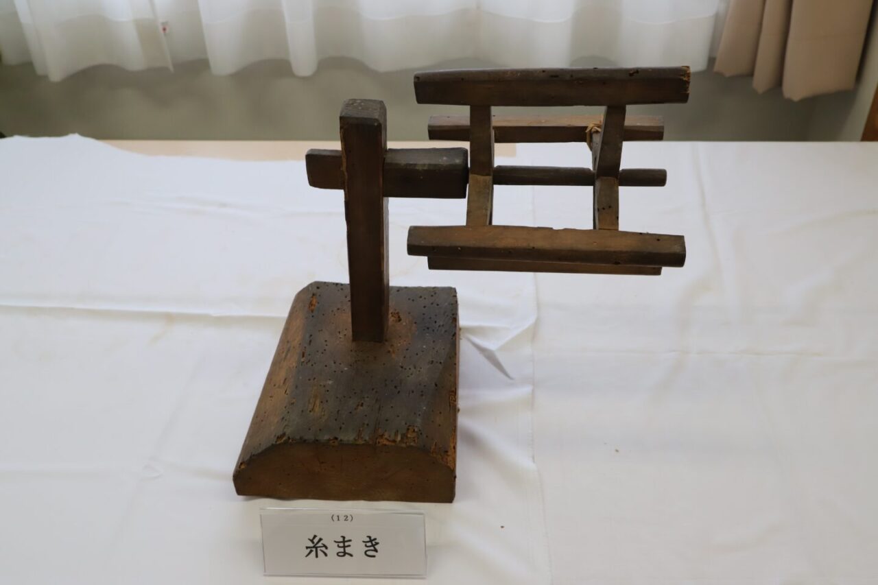 使用した道具を展示されました。展示の民具は、昭和50年頃に当時の清水町青年団OB(清水町郷土研究会)が民家から収集したものです。