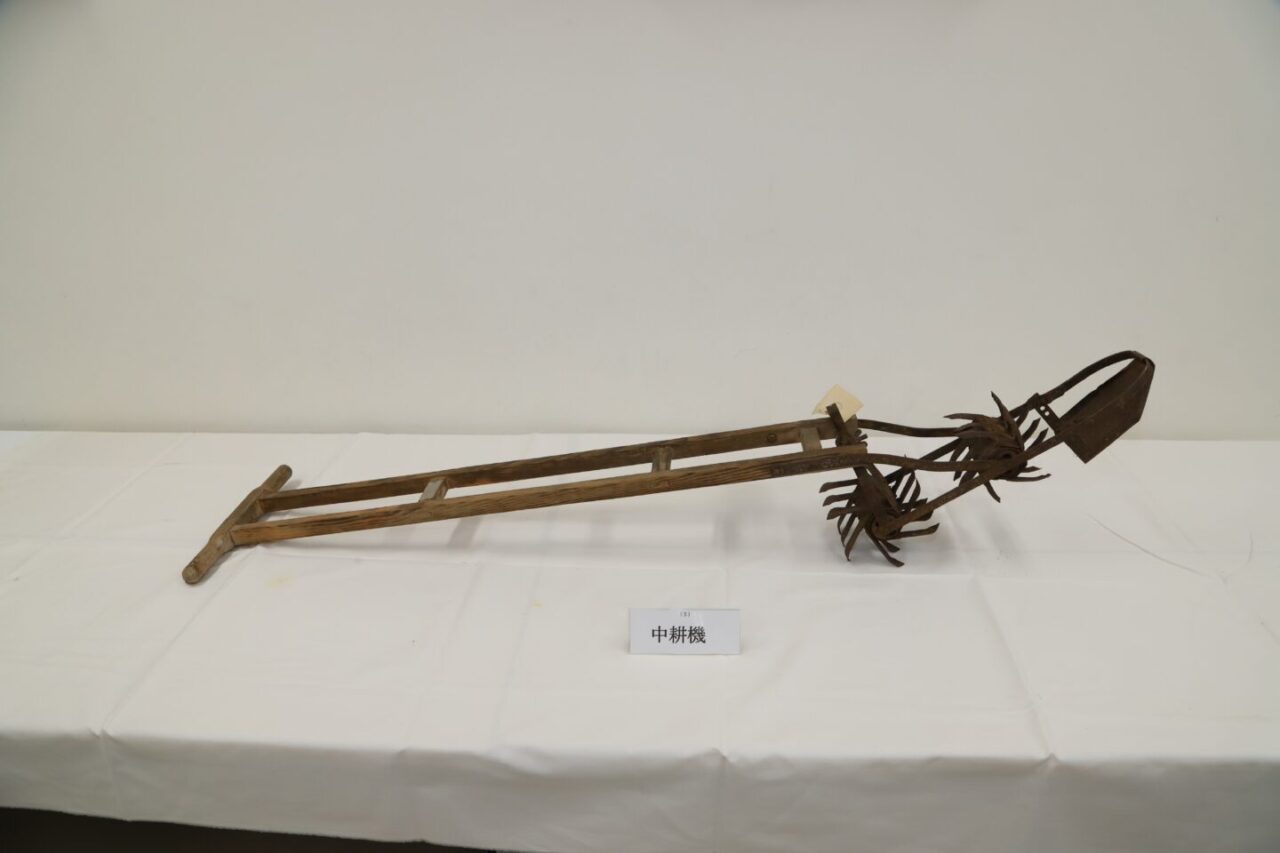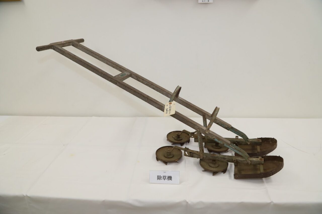 苗の植え付け後30日~40日の間の草丈10センチ~20センチ位までの間に株と株の間を人が押してあるき、雑草をかきとり中耕も兼ねて使用されました。一日かかっても1.5反位しか使えず、重量があり、また当時は農機具も配給制度であったため一般農家には普及しませんでした。