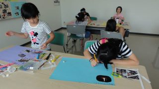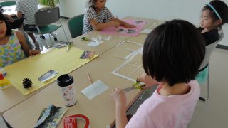 思い出を振り返りながら、写真を切り貼りして、コメントを入れ、隊員募集のポスター作りをしました。