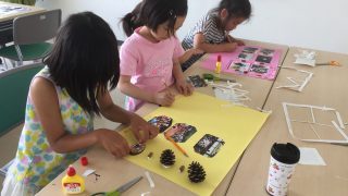 木の実など自然素材を使い、東っ子自然たんけん隊らしく仕上げました。