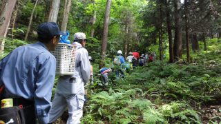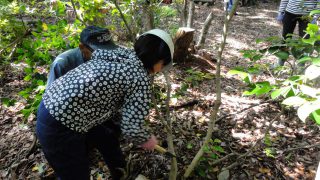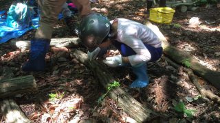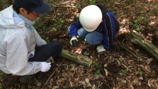 シイタケの菌打ちは初めて体験する子が多く、菌種に興味深々でした。