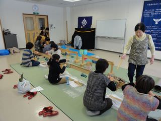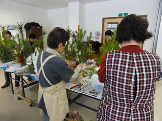 お正月に向けて、清水東地区伝統の「すげ」を使ったミニ門松をつくりました。