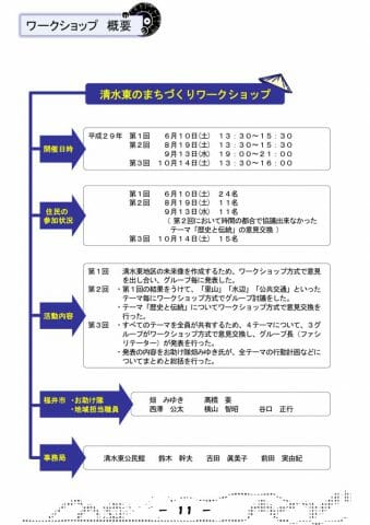 ワークショップの内容は、わかりやすいように地図や写真などを多く取り入れ、「清水東の将来像菅ぇビジョン」として報告書にまとめられました。